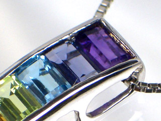 セブンカラーストーンはガーネット、ロードライトガーネット、シトリントパーズ、ペリドット、ブルートパーズ、アイオライト、アメシストのセミプレシャスストーンのストレートタイプペンダントネックレスです。
