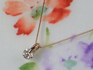 ワンポイントセッティングダイヤペンダントネックレスピンクゴールドシンプルダイヤペンダントネックレス